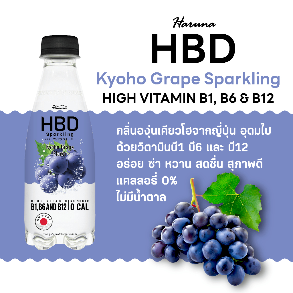 HBD SPARKLING WATER NO SUGAR KYOHO 330ML (21025) เครื่องดื่มอัดแก๊สไม่มีน้ำตาล กลิ่นเคียวโฮ