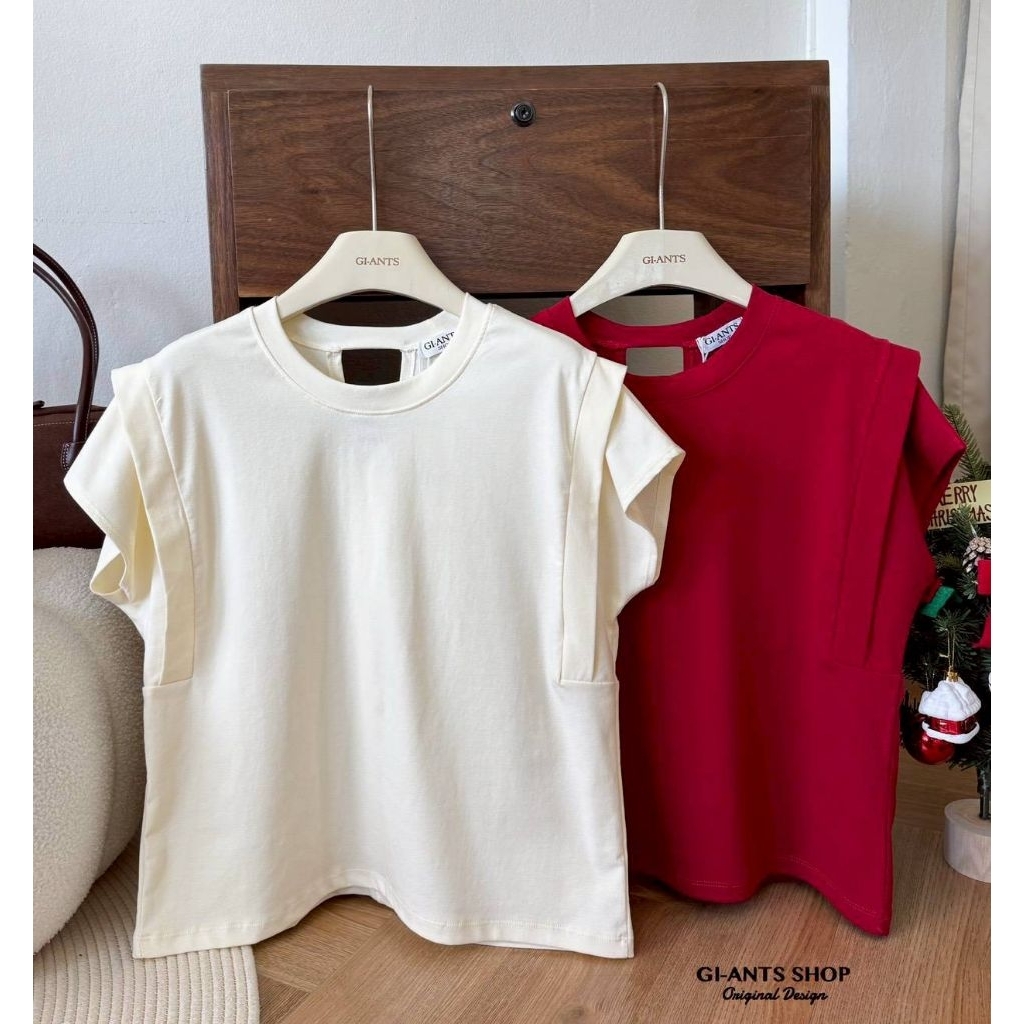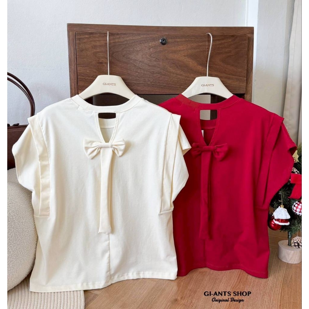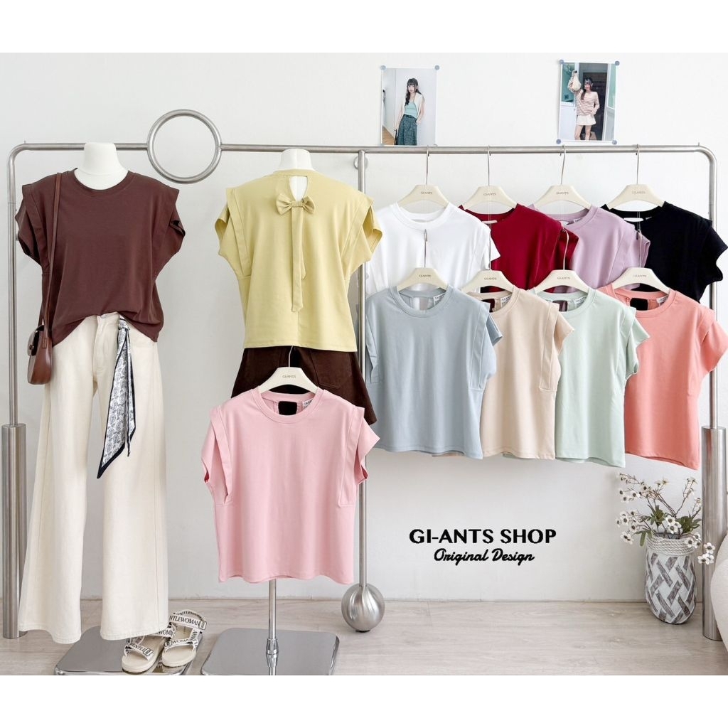 GI-ANTS (อกหน้าผ้า 40") เสื้อยืดคอกลมไหล่ล้ำดีเทลแต่งโบว์หลัง