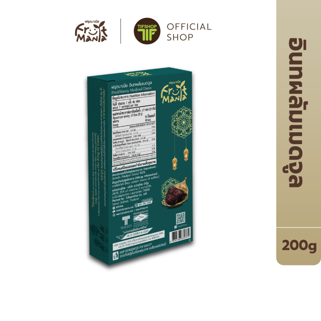 FruitMania ฟรุตมาเนีย อินทผลัม เมดจูล อบแห้ง 200 กรัม Medjool Dated ราชาแห่ง อินทผาลัม คัดเกรด พรีเมียม