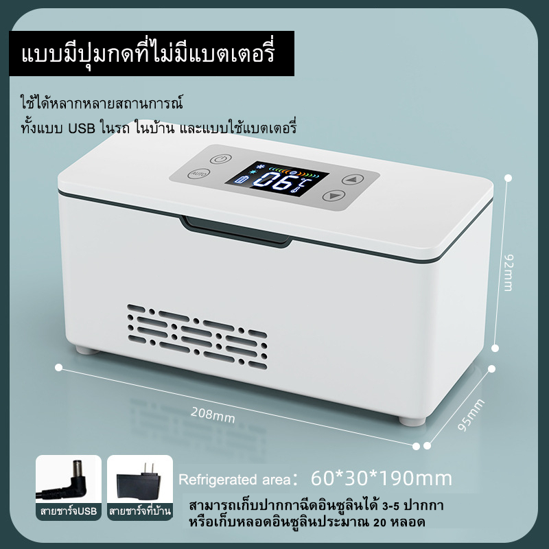 【พร้อมส่ง】Insulin Cooler Case จอแสดงผล LED อุณหภูมิปรับ Travel Box อินซูลินตู้เย็นกล่องชาร์จรถแบบพกพา