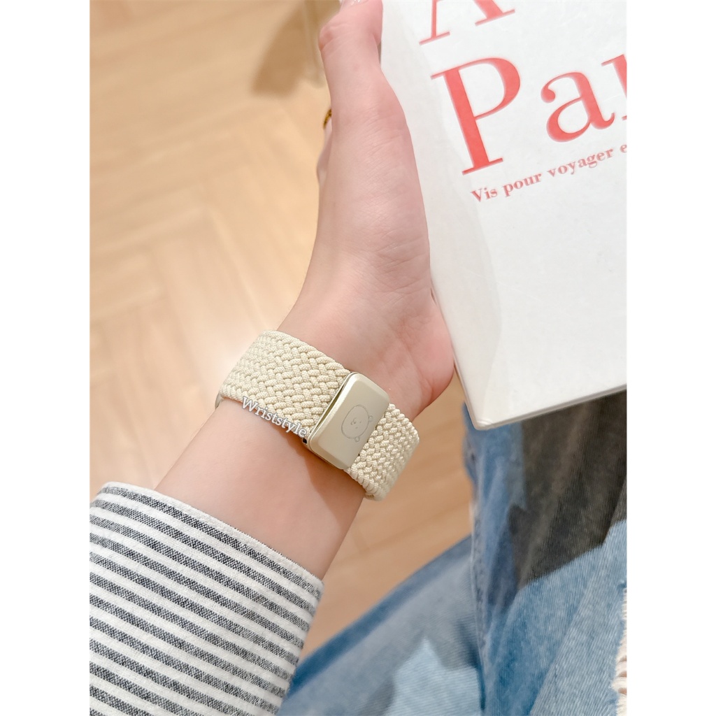หมีน่ารักหัวเข็มขัดแม่เหล็กไนลอนทอสายรัดสําหรับ applewatch s11 10 9 8 7 6 5 4 3 2 1 SE3 พิเศษ ระบายอากาศเปลี่ยนสร้อยข้อมือ iwatch 49mm 46mm 45 44 42 41 40 38