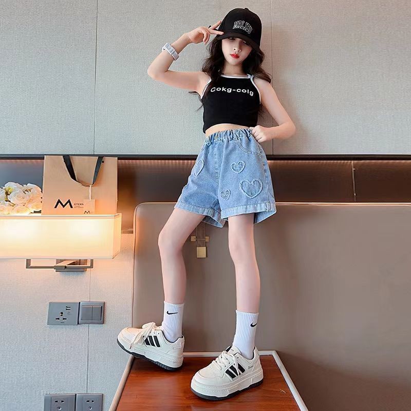 【YAOEENH】100-160ซม.ฤดูร้อนสาวหลวมกางเกงขาสั้นสบายๆกลางเด็กใหญ่นุ่มกางเกงยีนส์กางเกงขาสั้นเอวสูงสวมใส่ด้านนอกพร้อมสต็อกจัดส่งที่รวดเร็ว