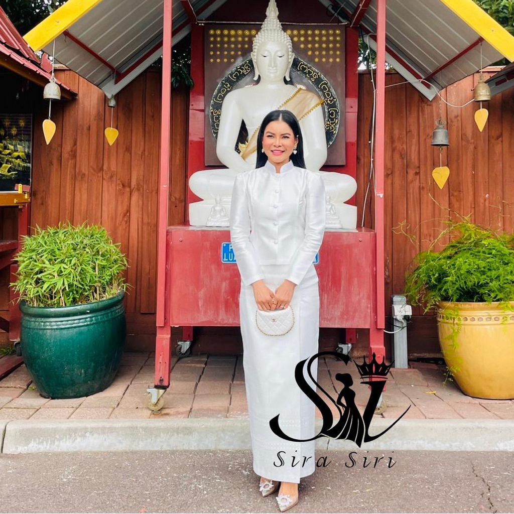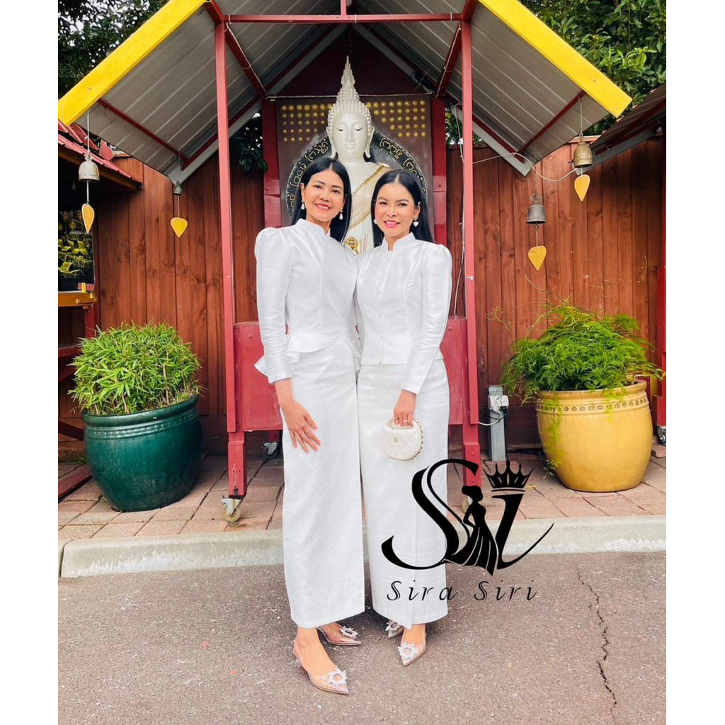 พร้อมส่ง✨ Sira Siri ชุดไทยสีขาว เสื้อจิตรลดาแขนยาว มาพร้อมกับผ้าถุงไหมแพรทิพย์ทอลายแพรวาสีขาว สวยลงตัวมากจ้า