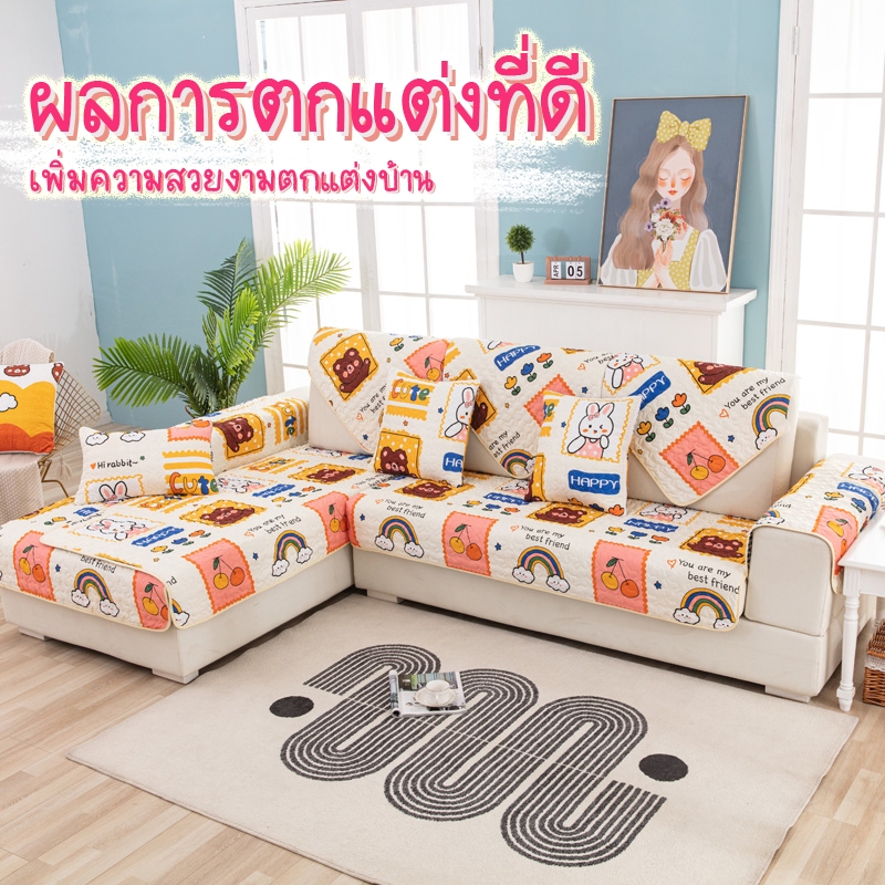 แผ่นรองโซฟา ผ้าคลุมโซฟา ผ้าปูโซฟา อเนกประสงค์ ผ้าฝ้าย 100% นุ่มสบาย เบาะโซฟาลายการ์ตูนน่ารัก กันลื่น ผ้าห่มกันลื่น