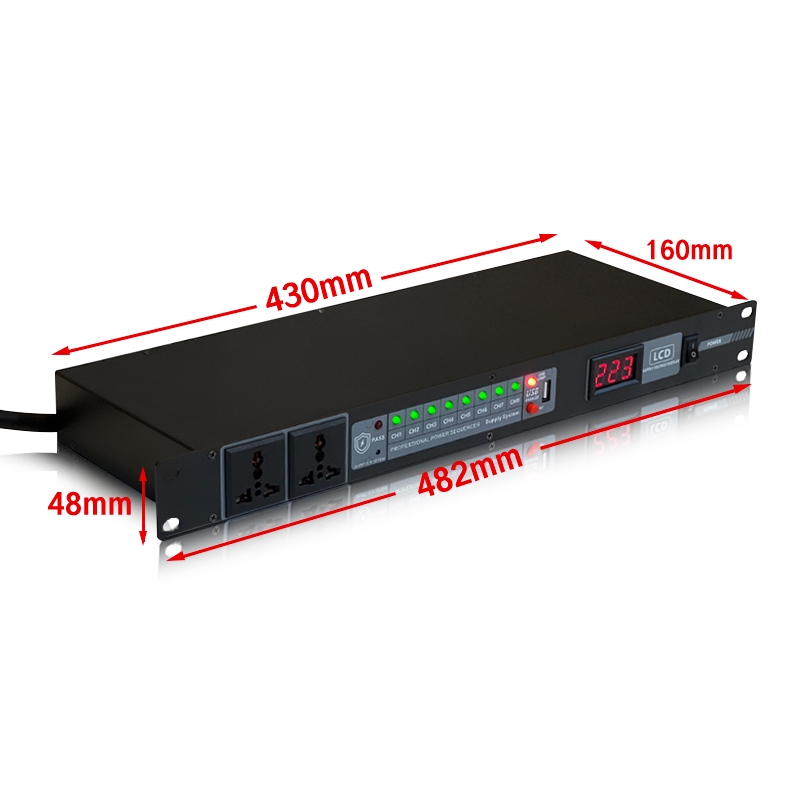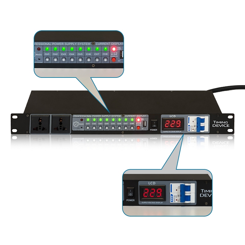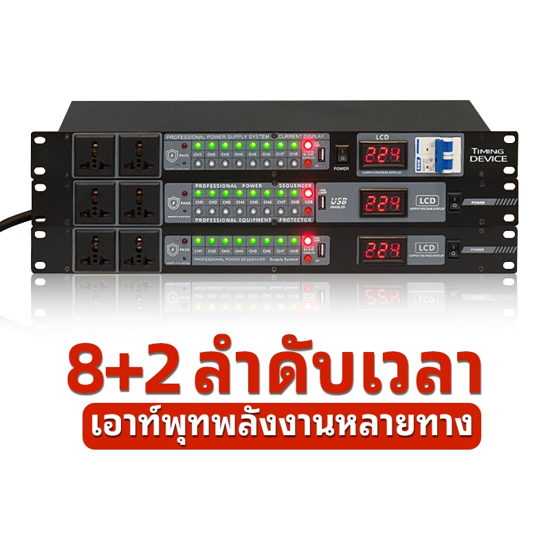 ช่อง8+2ปลั๊กไฟติดแร็ค การป้องกันแรงดันไฟฟ้าคงที่ ด้วยสวิตช์อิสระ ป้องกันไฟฟ้ เยอรมนีนำเข้า DRX999