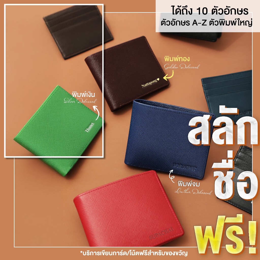 Louis Montini (สลักชื่อฟรี) กระเป๋าสตางค์ผู้ชาย กระเป๋าสตางค์หนังวัวแท้ลายซาเฟียโน่ TTM130