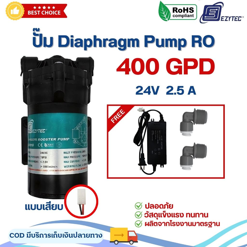 ปั๊มน้ำ Ezytec Diaphragm Pump RO 150 300 400 600 GPD ปั๊มเครื่องกรองน้ำ ตู้น้ำ พ่นหมอก ปั๊มRO SILVERTEC