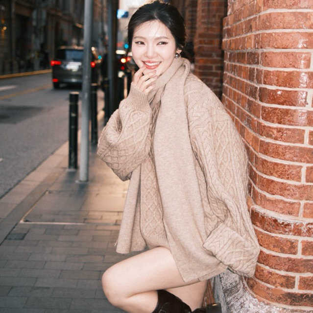 urban apparels |พร้อมส่ง day essentials wool set เสื้อกันหนาว sweater+กางเกงขาสั้น+ผ้าพันคอ ทรง oversized