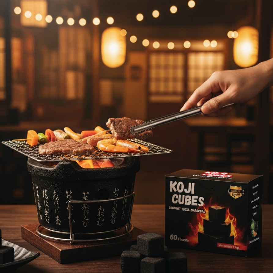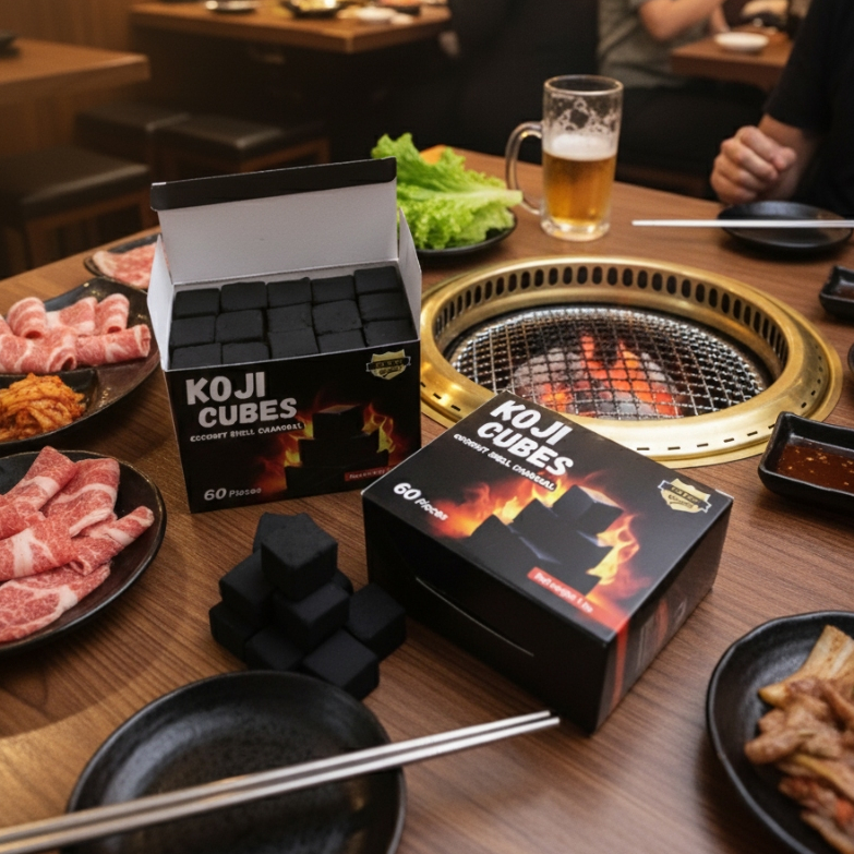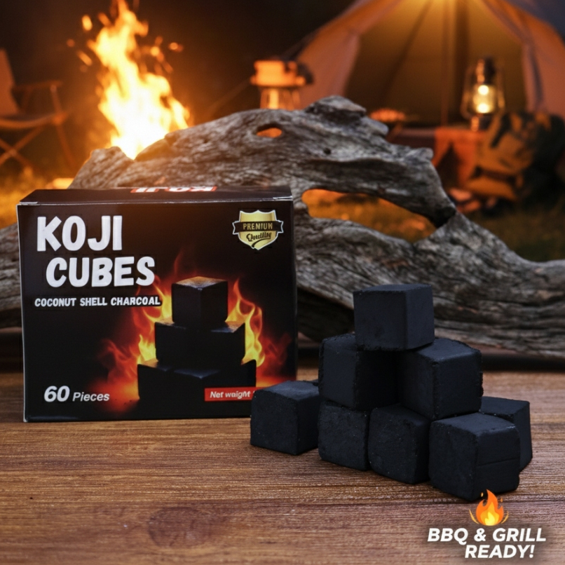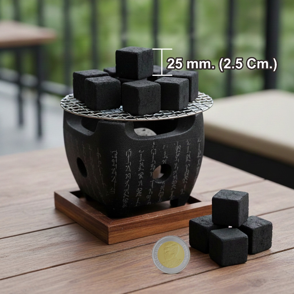 โกจิ คิวบ์ ถ่านอัดแท่งทรงลูกเต๋า 25มม. (2.5ซม.) เกรดพรีเมียม ไฟแรงนาน ไร้ควัน สำหรับเตาฮิดะและแคมป์ปิ้ง 1 kg 60 ก้อน