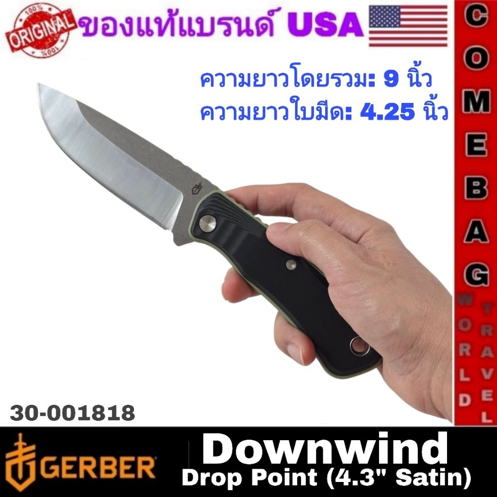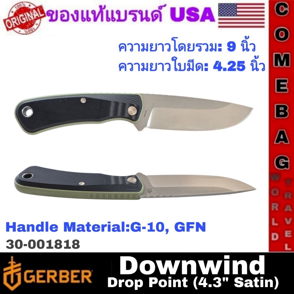 มีดGerber Downwind Drop Point Fixed Blade สีเขียวSage Green(4.3"Satin)ใบมีดStainless Still 7Cr17MoV ของแท้ แบรนด์อเมริกา