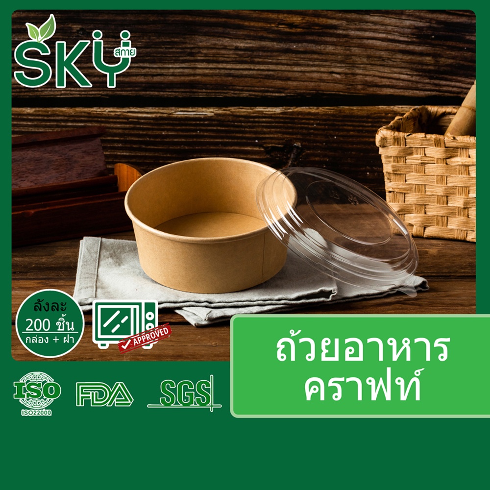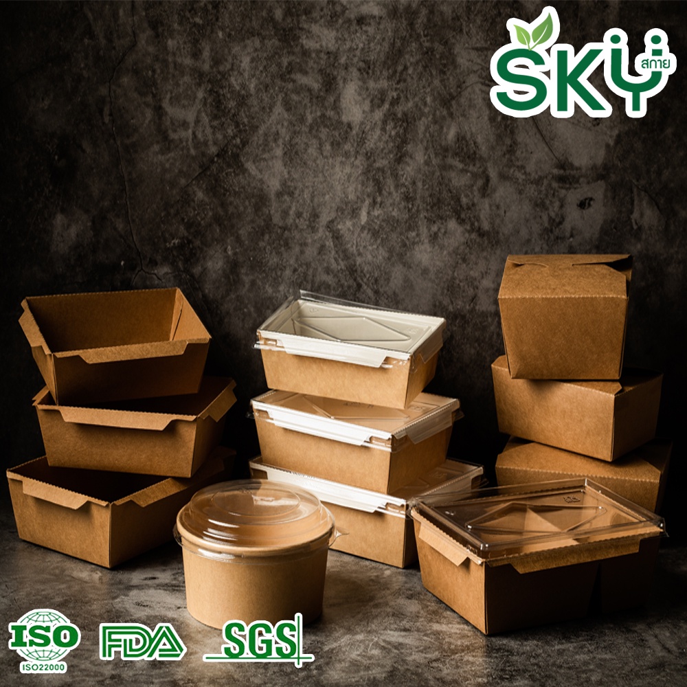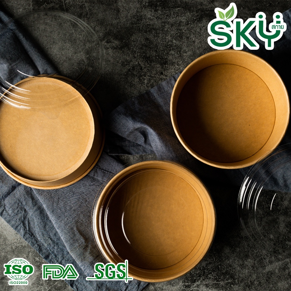 [ขายส่ง 200 ชุด] SKY ถ้วยอาหารกระดาษคราฟท์ พร้อมฝา PET กล่องข้าว ถ้วยแกง เดลิเวอรี่ Food Grade ขนาด 500|750|1000|1300ml