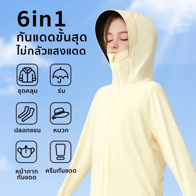Patt Mom เสื้อเด็ก เสื้อคลุมกันแดด ผ้านิ่มๆสไตล์จีน ระบายอากาศได้ดี ป้องกันรังสียูวีได้ แขนยาวมีหมวกซิป (S013-100BFSF)