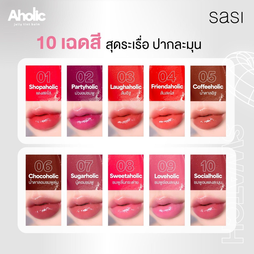 SASI Aholic Jelly Tint Balm ศศิ อะโฮลิค เจลลี่ ทินท์ บาล์ม ลิปทินท์บาล์ม เนื้อเจลลี่ ฉ่ำวาว 8 มล.