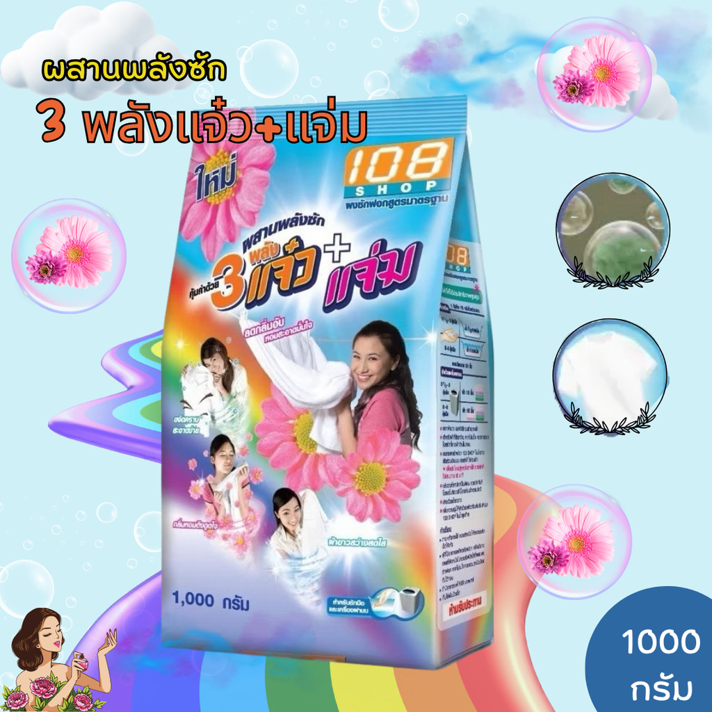 1 ถุง ผงซักฟอก 108 SHOP 3 พลัง แจ๋ว+แจ่ม 1000 กรัม สำหรับซักมือ และเครื่องเปิดฝาด้านบน