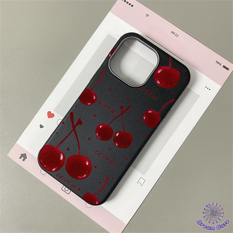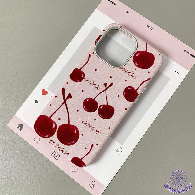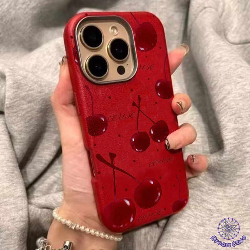 เคสไอโฟน 11 น่ารักสีแดงเชอร์รี่พื้นผิวหนังนุ่ม สำหรับ IPhone 17 16 13 15 11 14 12 Pro Max 7 8 16 14 15 Plus XR X XS Max