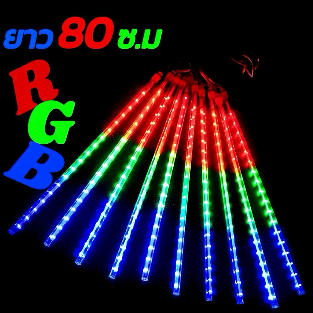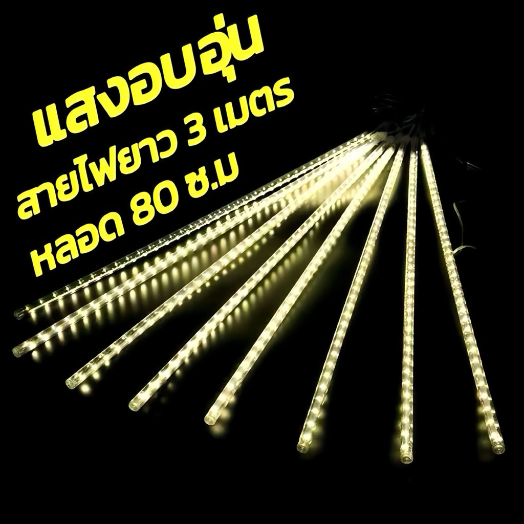 ไฟดาวตก LEDไฟตกแต่ง 220Vไฟled ไฟคริสต์มาส ชุด8แท่งยาว80 50 30ซม น้ำตก หลอดต้นคริสต์มาส โคมไฟตกแต่ง หลอดนีออนสี.