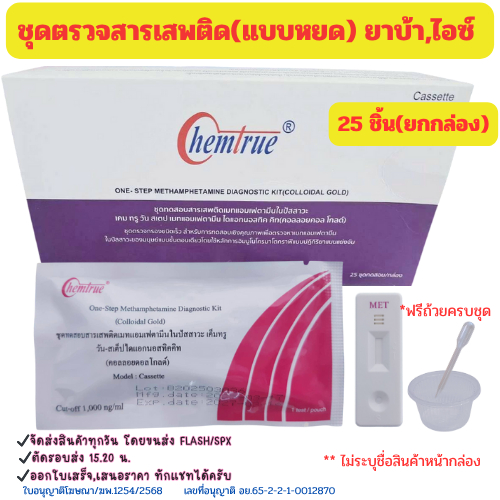 (ราคาส่ง,ยกกล่อง) ตรวจสารเสพติด ชุดทดสอบสารเสพติด ตรวจยาบ้า ยาไอซ์ Chemtrue