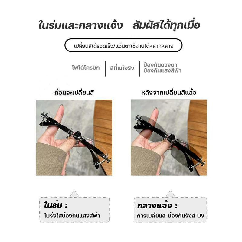 [จัดส่งในกทม]แว่นสายตาสั้น แว่นกรองแสง ฟ้า แท้ ไร้กรอบ เลนส์ออโต้ ออกแดดเปลี่ยนสี กันรังสี Super Auto LensกันUV99%unisex