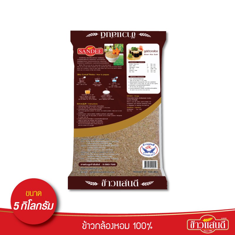 ข้าวแสนดี ข้าวกล้องหอม 100 % 5 กก. จำนวน 2 ถุง ข้าวเพื่อสุขภาพ