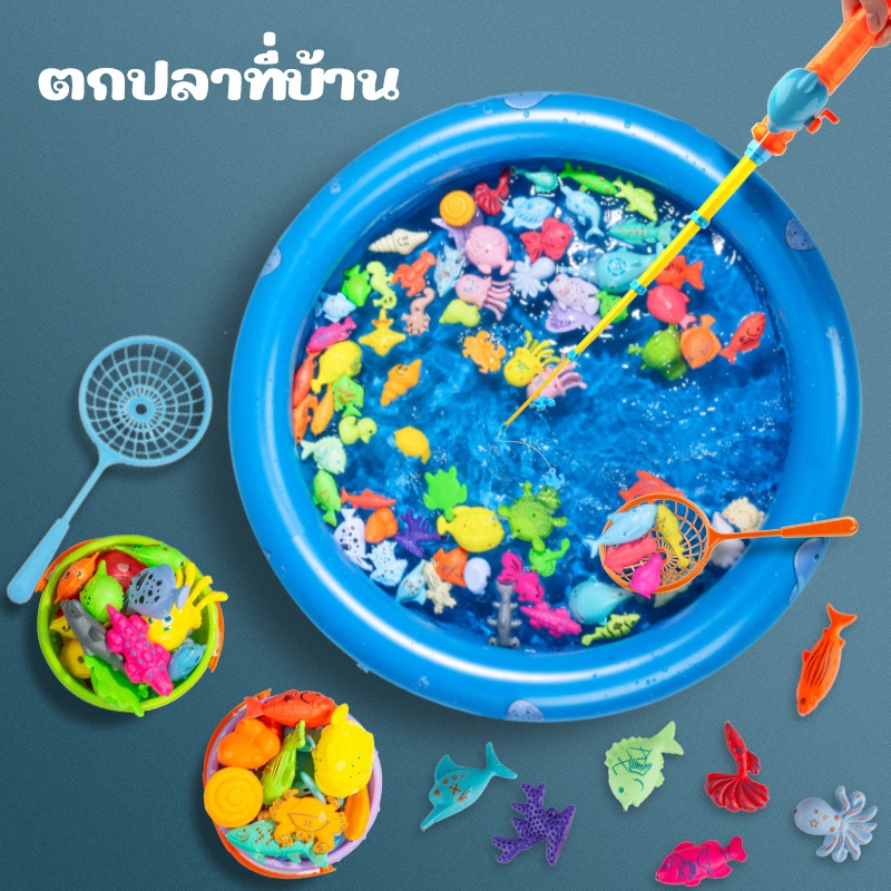ส่งด่วนได้ ของเล่นตกปลาแม่เหล็ก เกมตกปลา Fishing Game Magnet สำหรับเด็ก แถมฟรี สูบลม