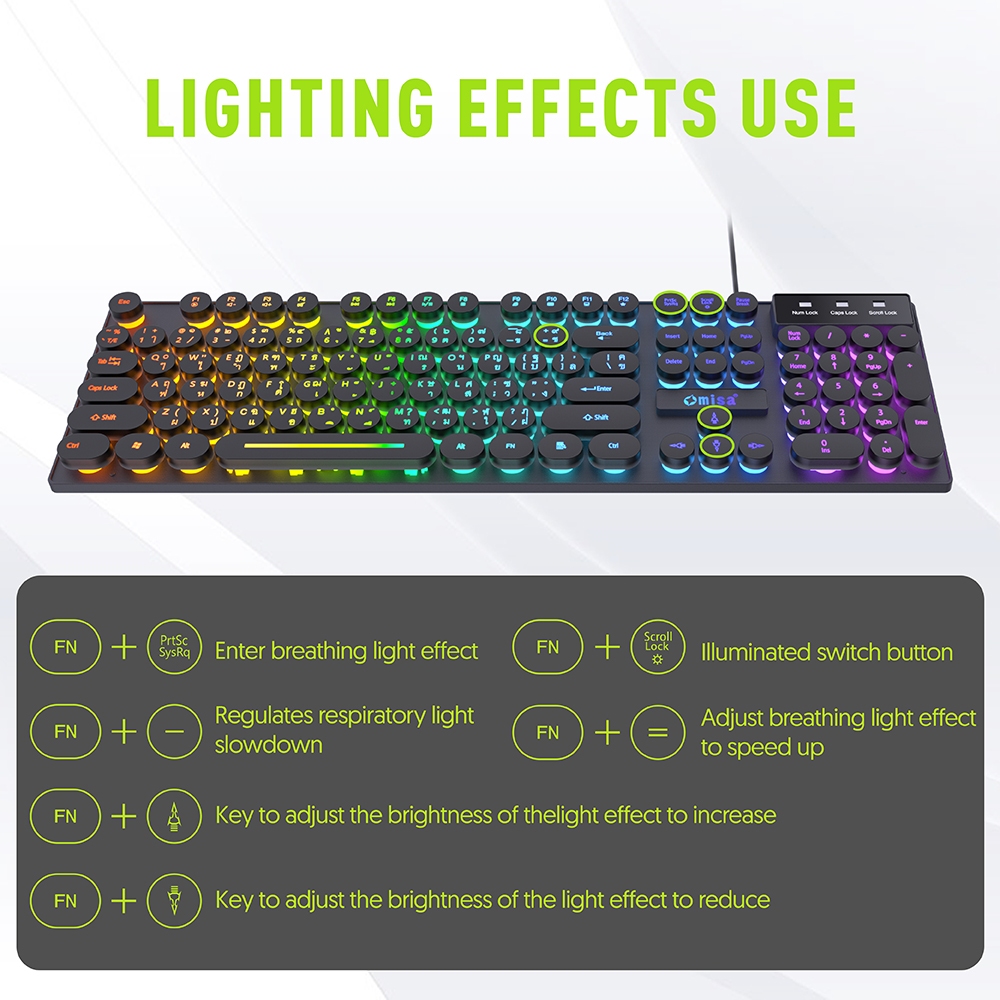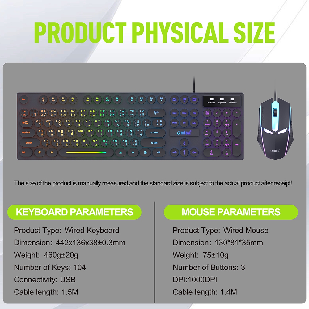 OMISA ชุดเมาส์+คีย์บอร์ดเกมมิ่ง รุ่น KM-3398 มีไฟ 7 สี