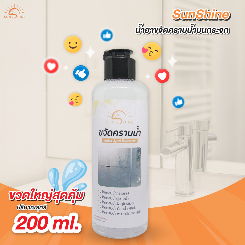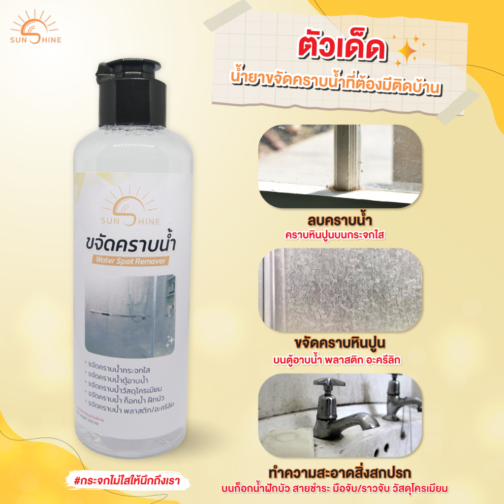 (แถมถุงมือ+ฟองน้ำ) น้ำยาขจัดคราบน้ำ Sunshine สำหรับกระจกใส 2ขวด