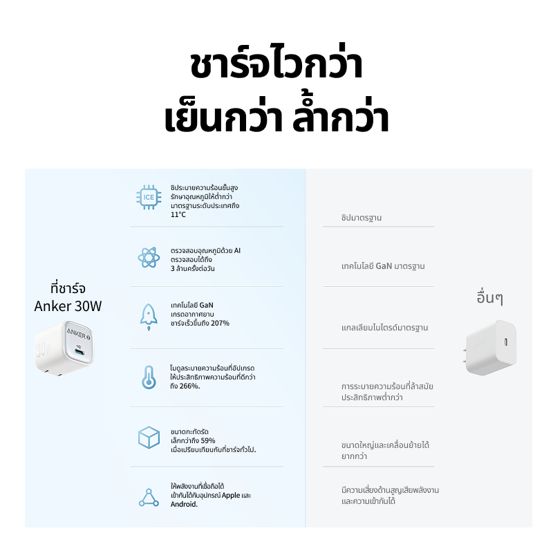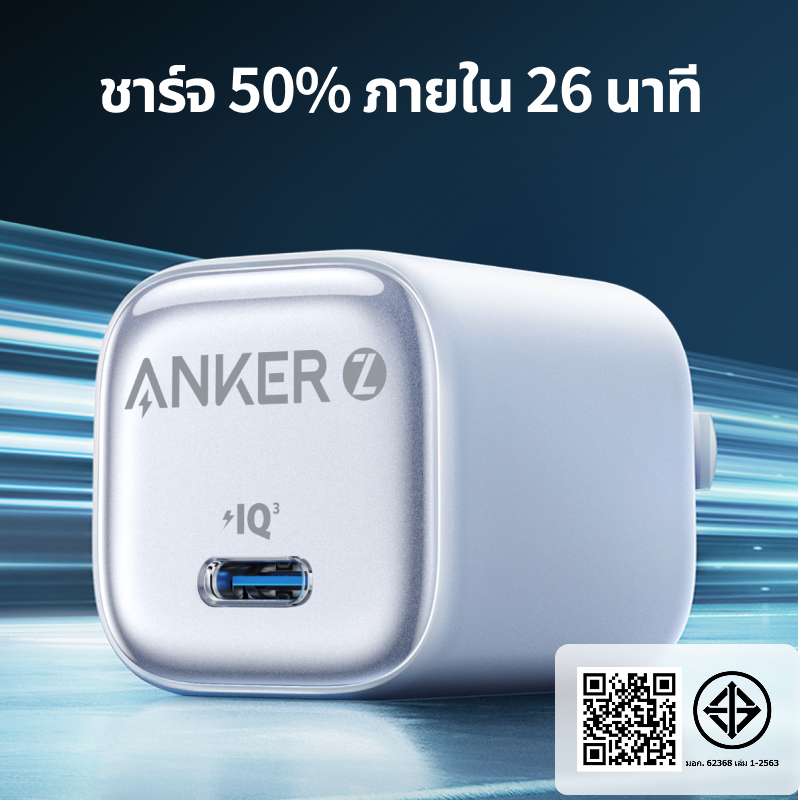 Anker Zolo PD 20W/30W GaN Ice-Cooled Fast Charger Fast GaN charging With Cable Adapter สําหรับ iPhone 17 Pro Max/16 Pro Max/15/14/13 /Samsung and other Type-C phones