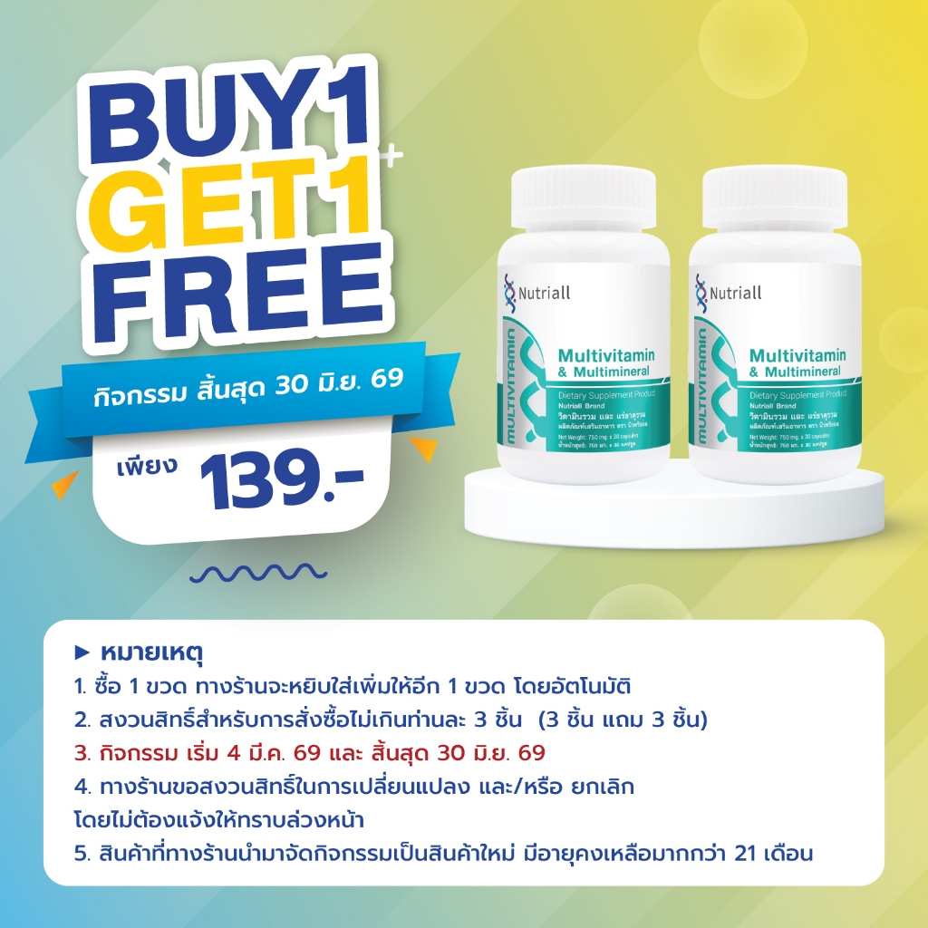 [ซื้อ 1 แถม 1] วิตามินรวม และ แร่ธาตุรวม นิวทริออล Multivitamin & Multimineral Nutriall วิตามินและแร่ธาตุ มัลติวิตามิน