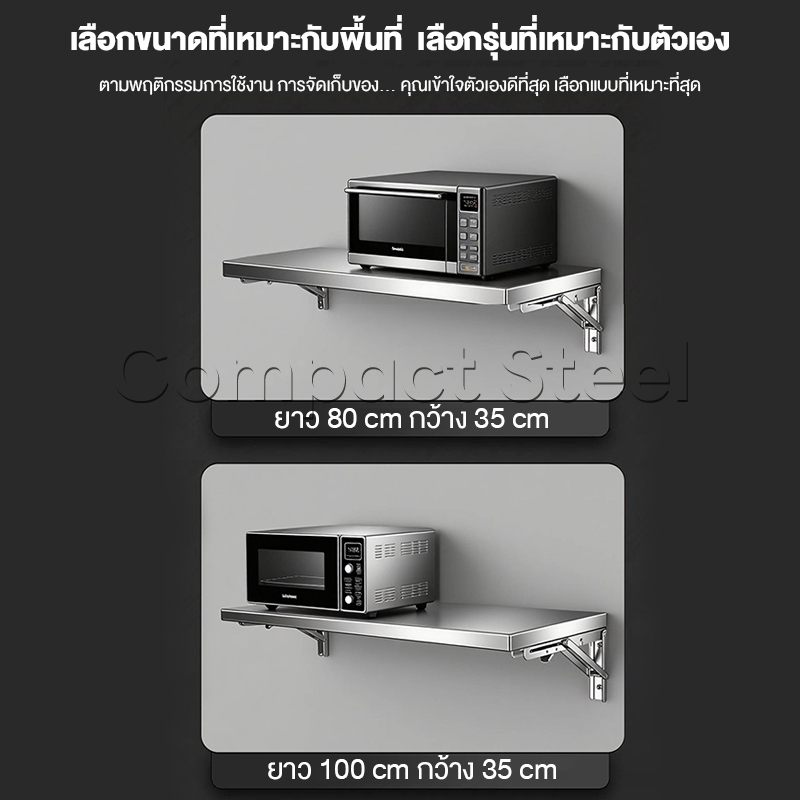 Compact Steel {พับได้} ชั้นวางของในครัว สแตนเลส ติดผนัง ชั้นวางไมโครเวฟ จัดระเบียบห้องครัว กันน้ำไม่เป็นสนิม