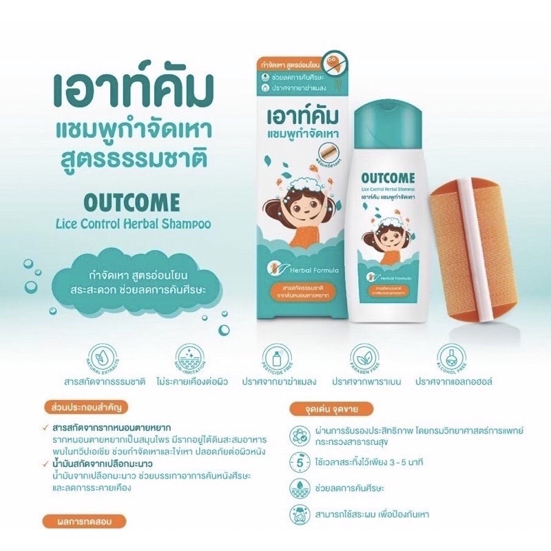 Outcome Hair Wash Shampoo เอาท์คัม แฮร์ วาช ชมพู [60 Ml.] แชมพูกำจัดเหาจากธรรมชาติ
