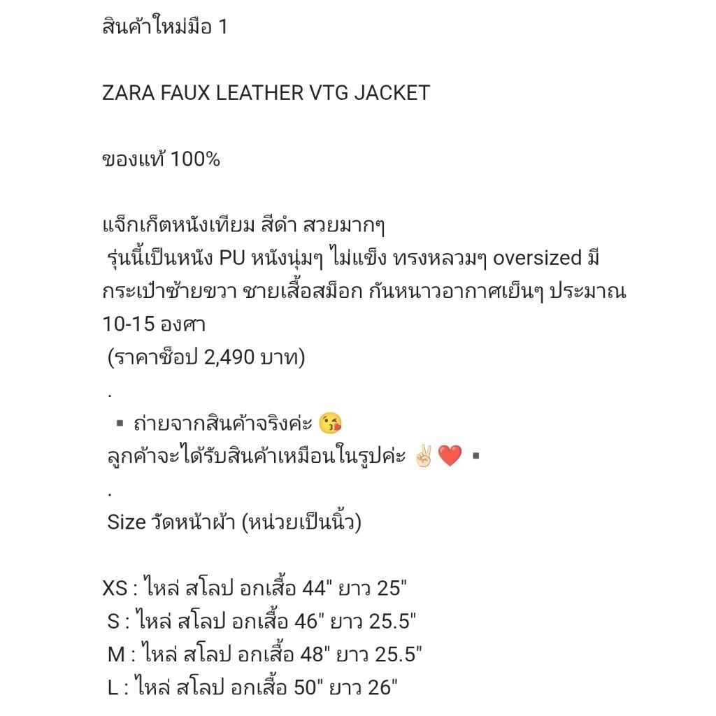 **พร้อมส่งจากไทย** ของแท้ 100% ZARA FAUX LEATHER VTG JACKET
