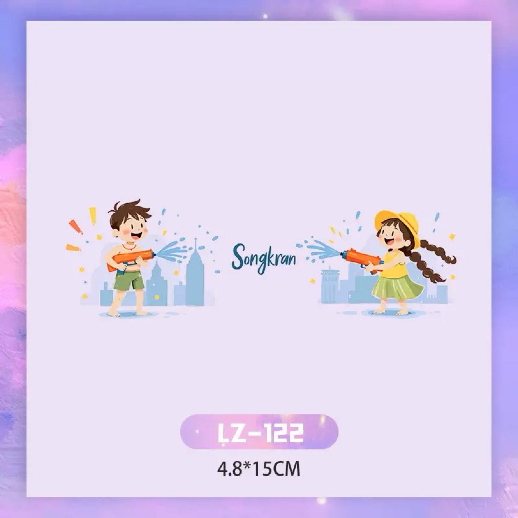 แทททูสงกรานต์ สติกเกอร์แทททูแปะหน้า ลายสงกรานต์ น่ารัก สีสันสดใส Tattoo Songkran