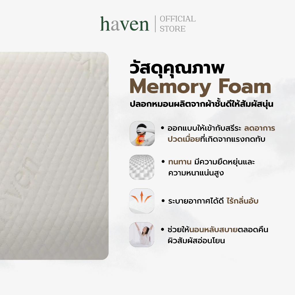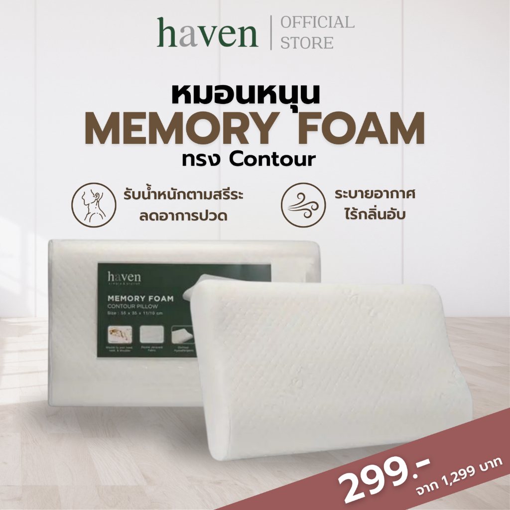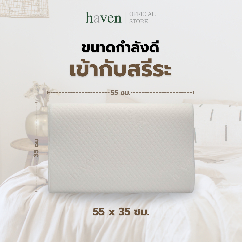 Haven หมอนสุขภาพ แก้ปวดคอ บ่า ไหล่ หมอนเมมโมรี่โฟม หมอนหนุน รองรับสรีระ ลดนอนกรน ลดแผลกดทับ รองต้นคอ
