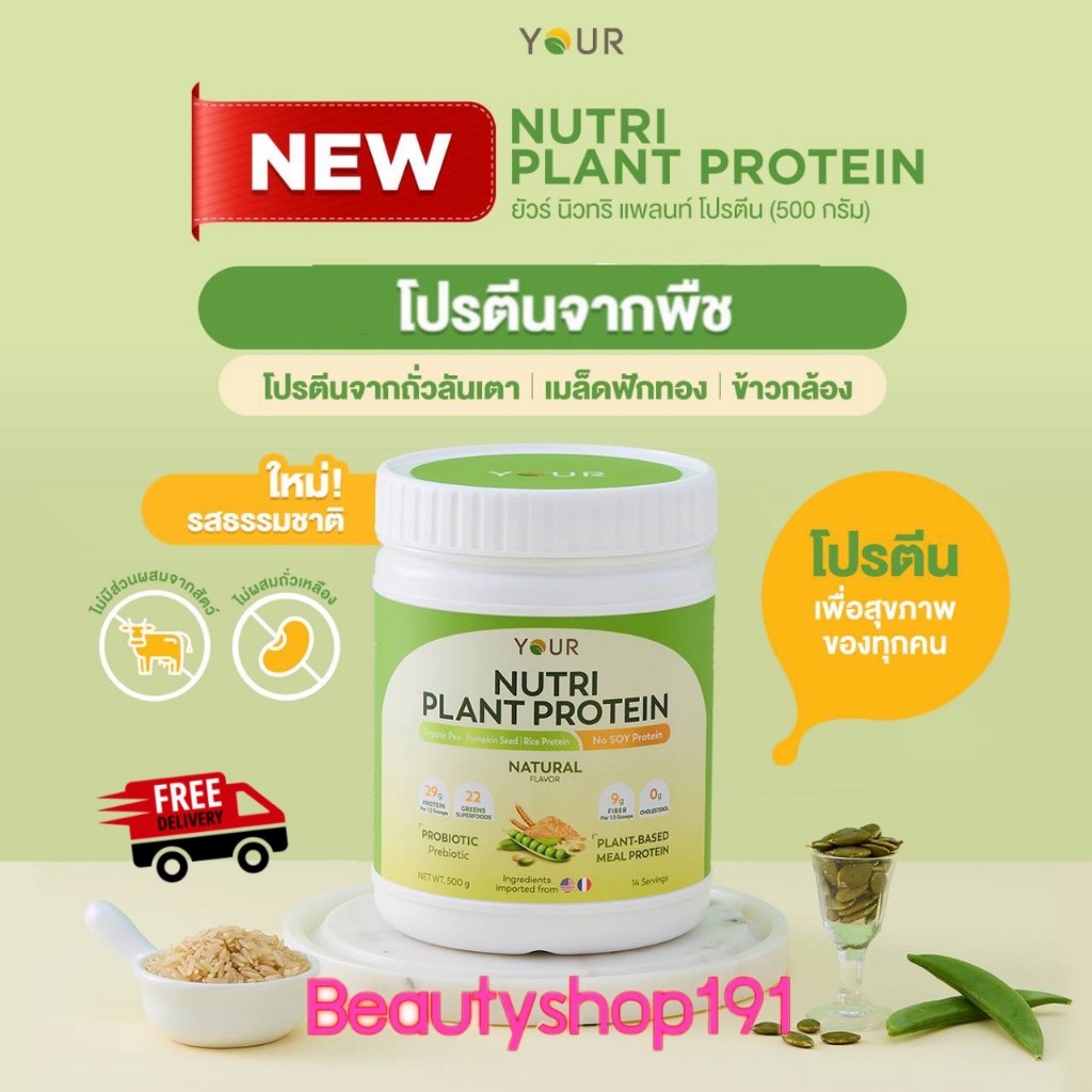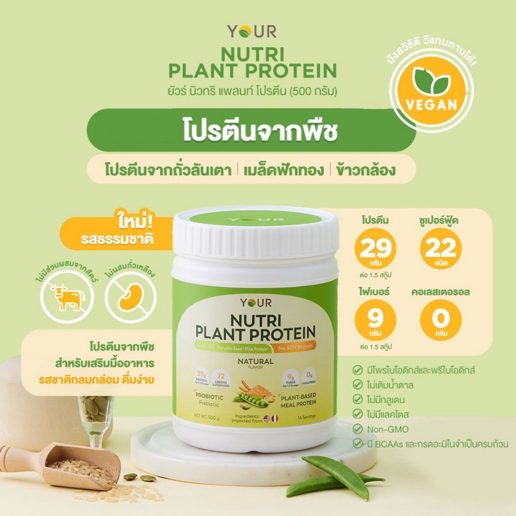 YOUR Nutri Plant Protein ยัวร์นิวทริแพลนท์ โปรตีนจากพืช รสธรรมชาติ และรสช็อคโกแลต ขนาด 500 กรัม