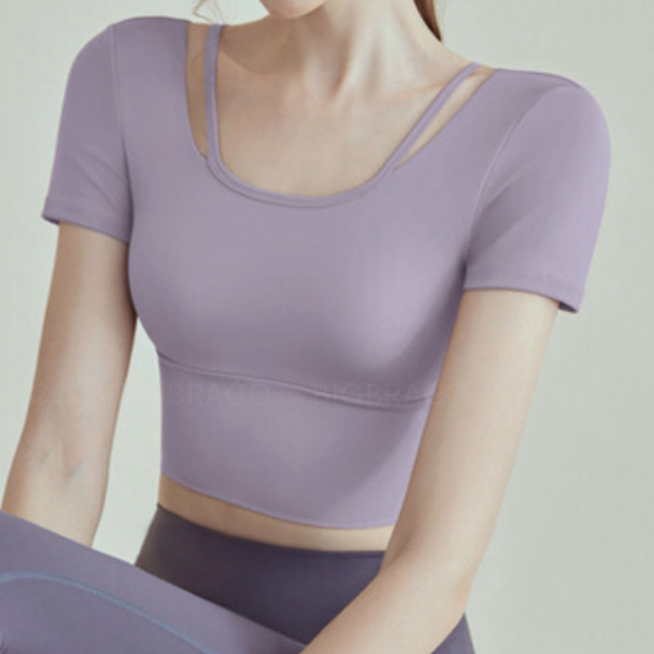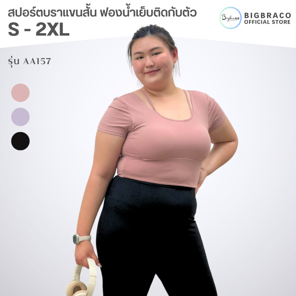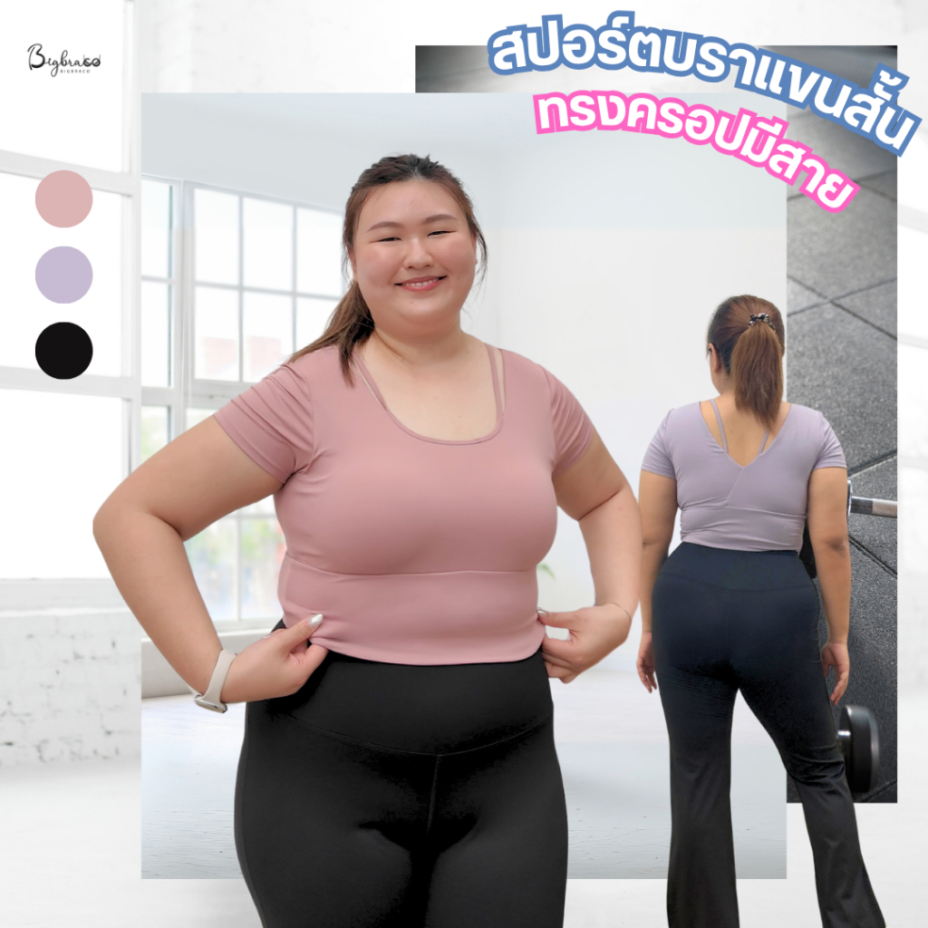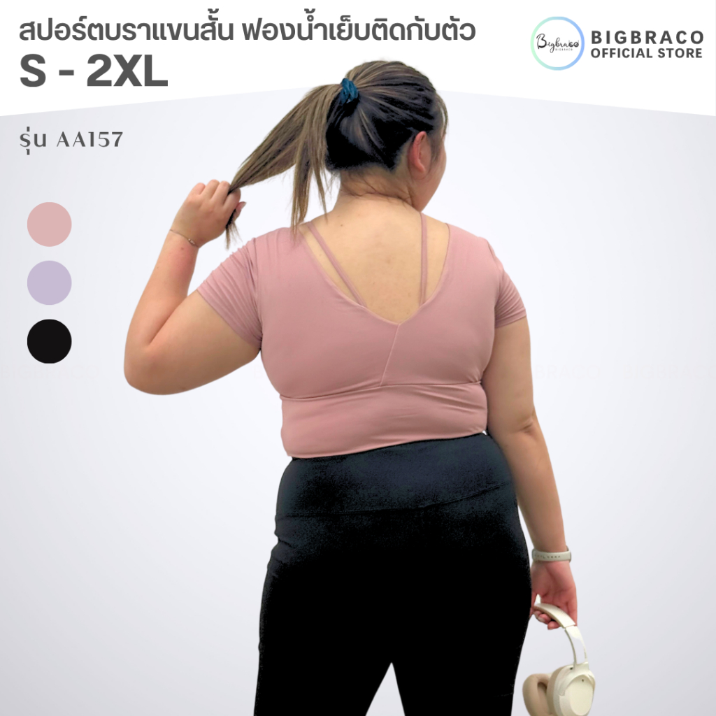 (Plussize S-2XL) Bigbraco | AA157 - เสื้อออกกำลังกาย เสื้อโยคะ เสื้อพิลาทิส ทรงครอป ผ้านุ่มยืดหยุ่น