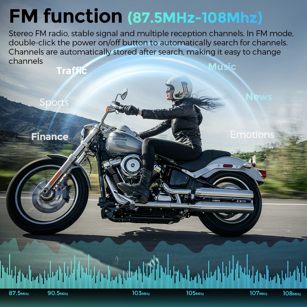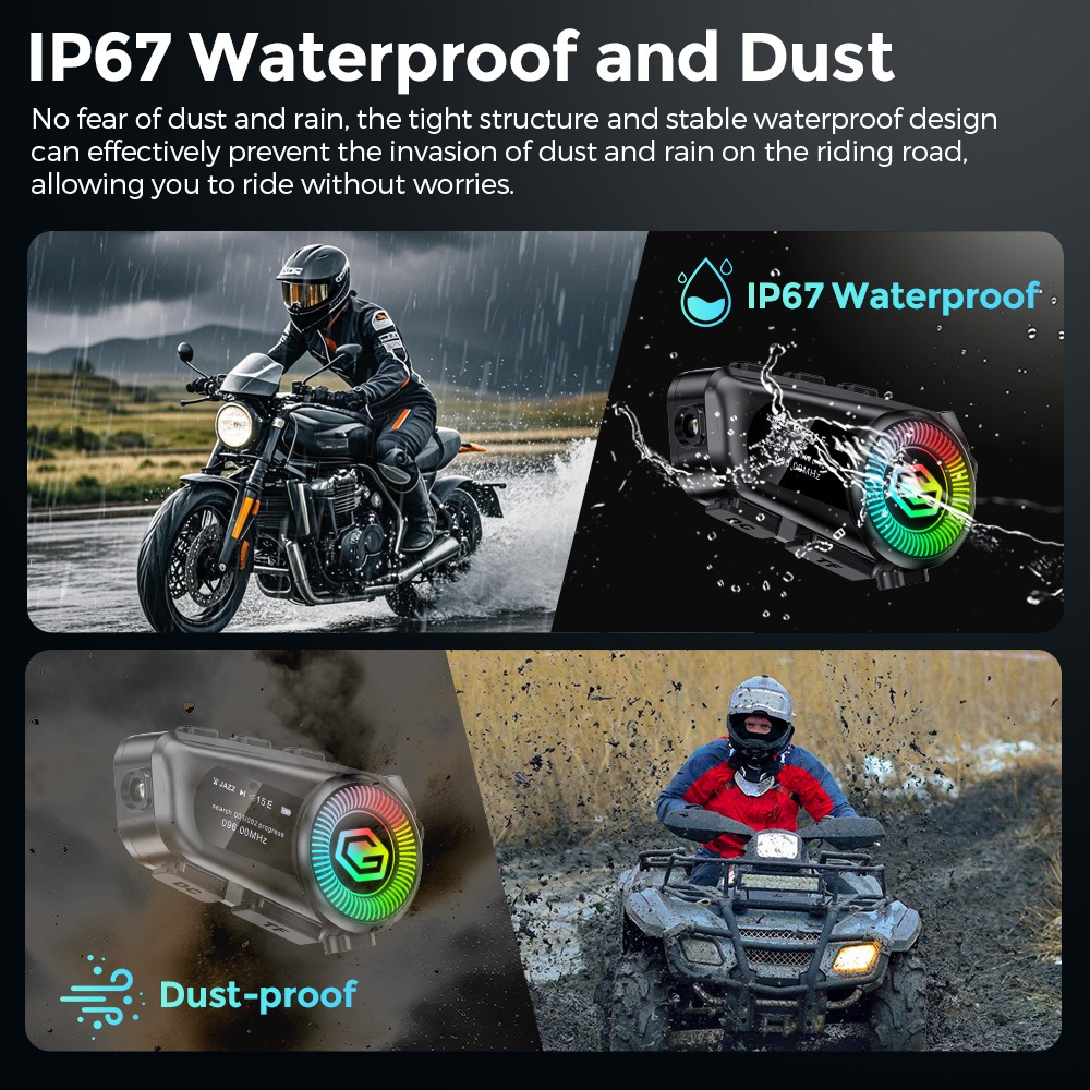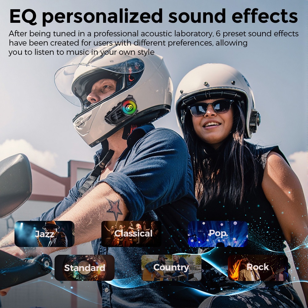 GEARELEC R1 ชุดหูฟังบลูทูธ หูฟังหมวกกันน็อค บลูทูธ 5.3 แฮนด์ฟรี IP67 กันน้ํา วิทยุ FM ไฟ RGB รองรับการ์ด TF HIFI & EQ