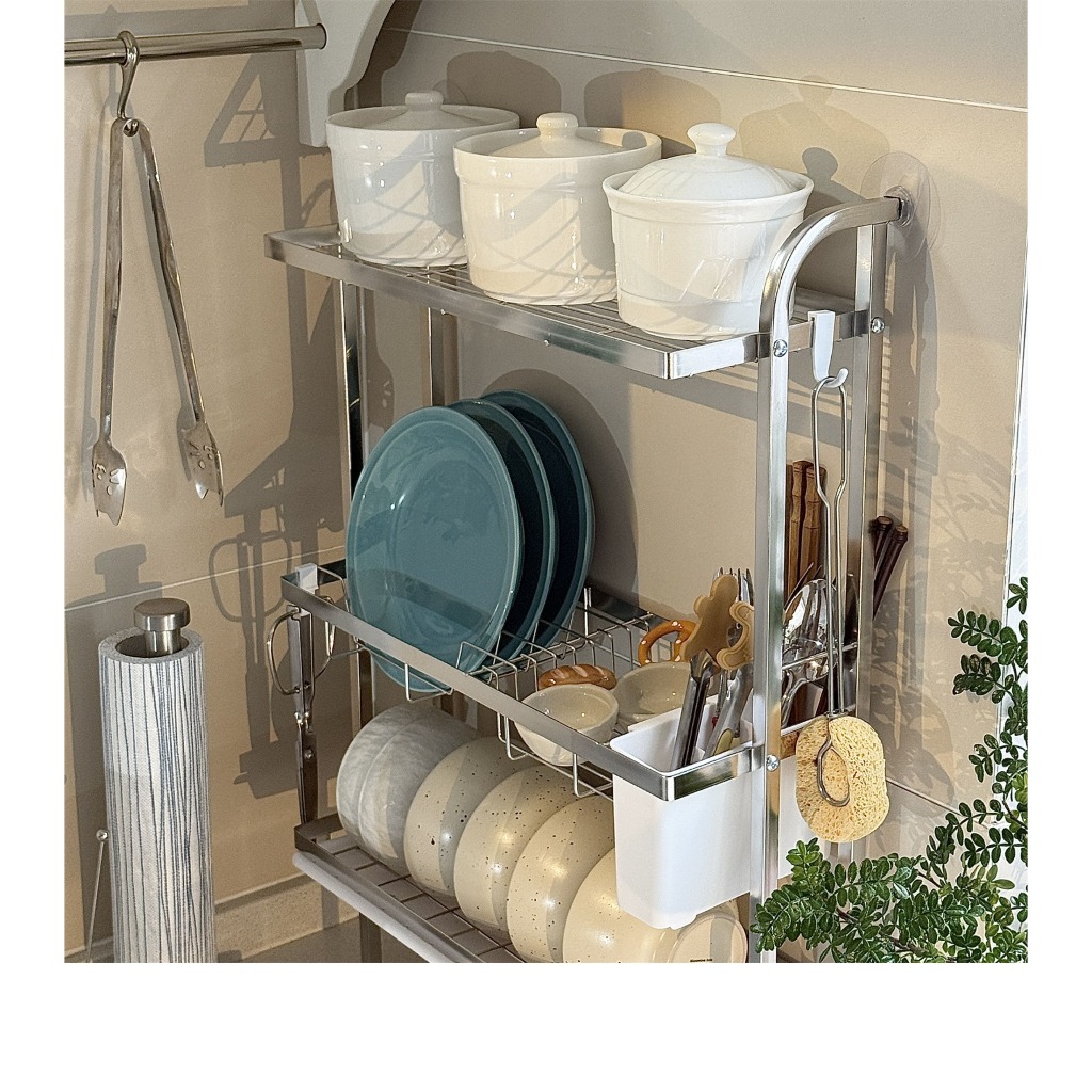 GSlife【สแตนเลส 304】ชั้นวางจานติดผนังพร้อมถาดรองน้ำทิ้งแบบถอดได้