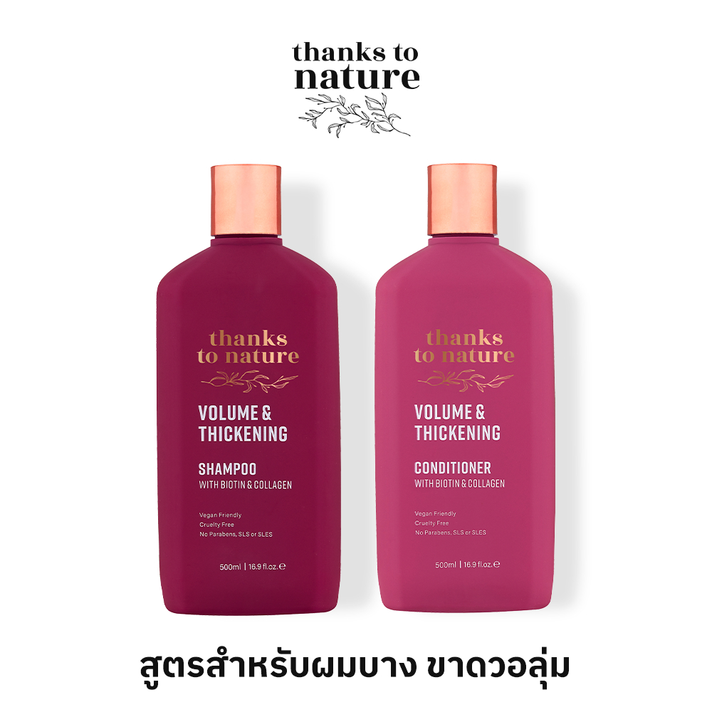 แชมพู & ครีมนวดผมบาง เพิ่มวอลูม Thanks to Nature ผมไม่ลีบ ผมลีบแบน 500ml ผสมไบโอติน จัดทรงง่าย