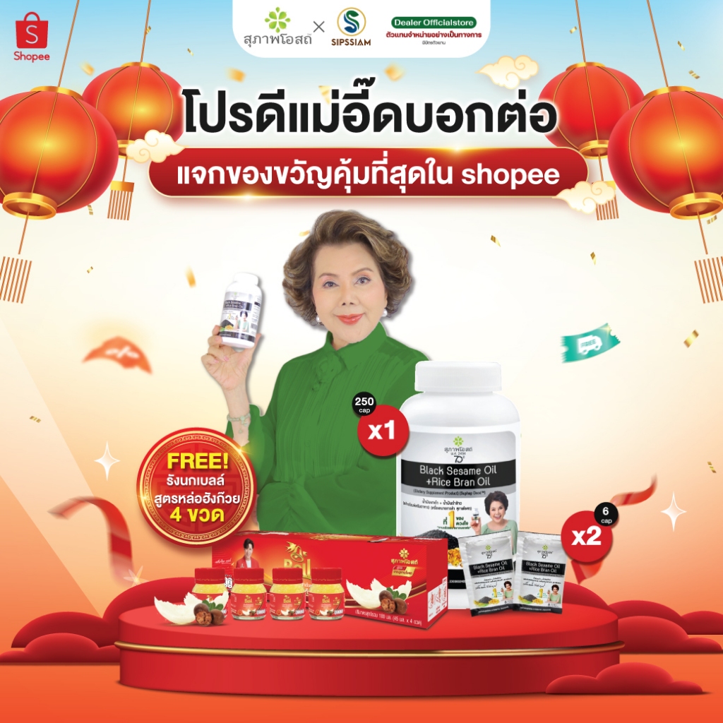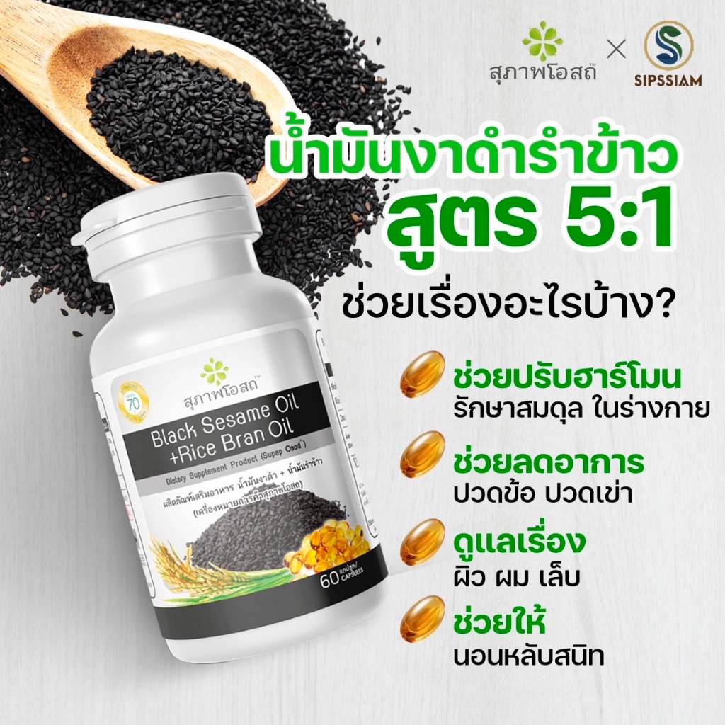 [แถมฟรี รังนกเบล 1แพ็ค ] สุภาพโอสถ น้ำมันงาดำรำข้าว 250 แคปซูล 1 กระปุก + น้ำมันงาดำรำข้าว 2 ซอง
