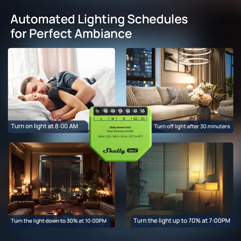 Shelly Dimmer Gen3 สวิตช์หรี่ไฟอัจฉริยะ WiFi Module ใช้งานได้ทั้งมี/ไม่มีสาย Neutral ควบคุมผ่านแอป Smart Home