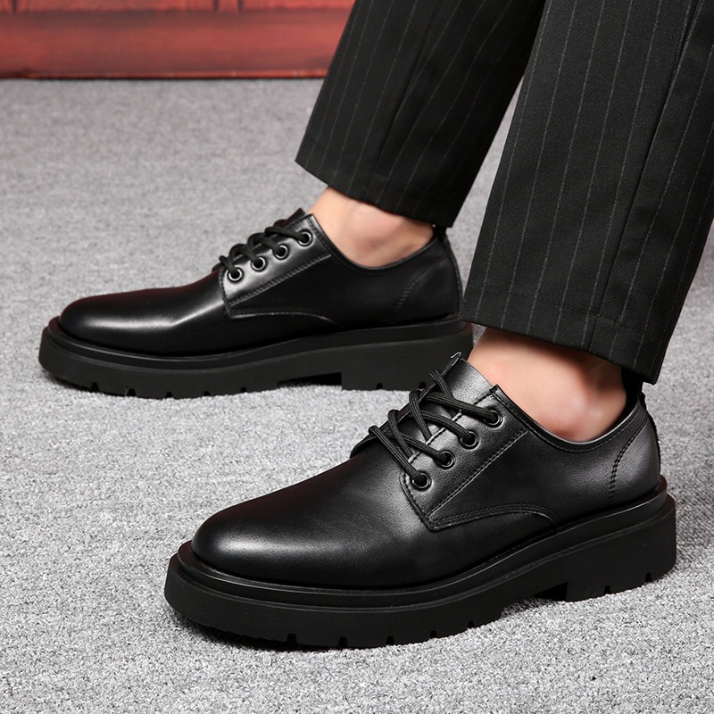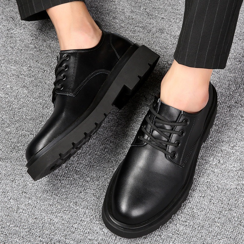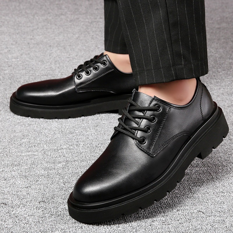 รองเท้าหนังผู้ชายรองเท้าทํางานสีดํา Lace-Up หนา Soled น้ําหนักเบาสบายขนาด 39-44