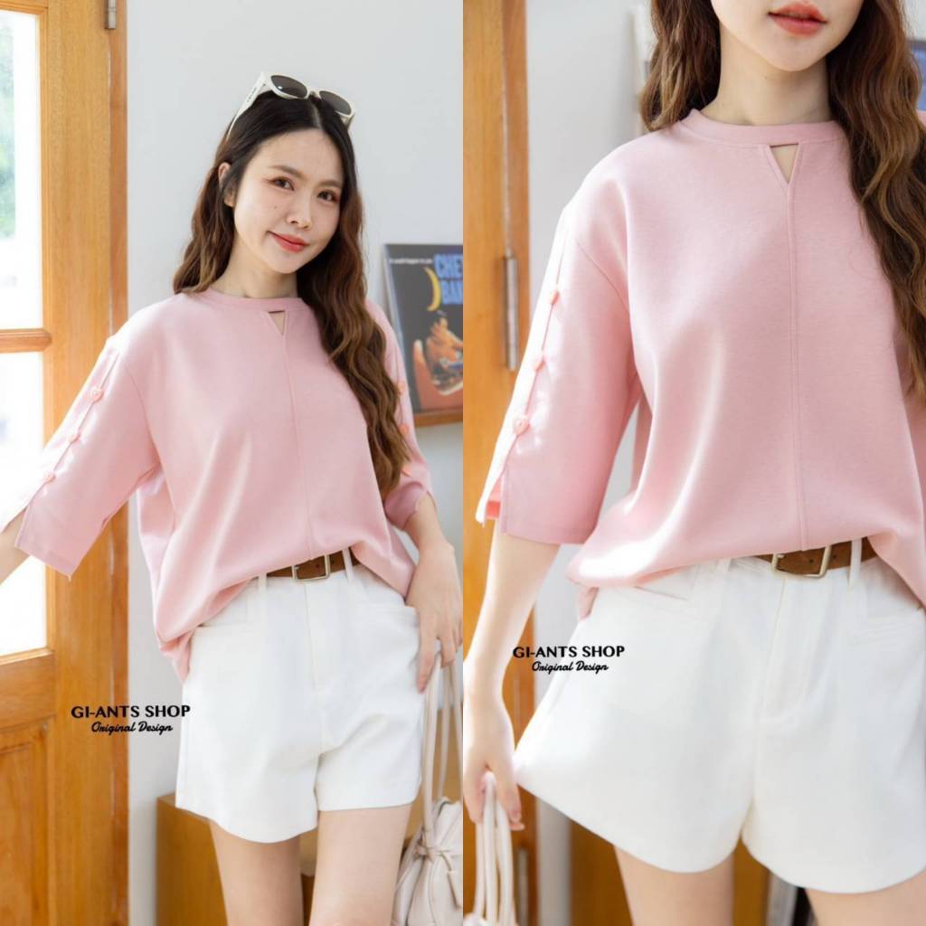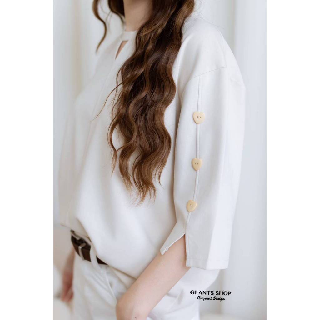 G1382 คอกลมแขนศอกกระดุมแขนหัวใจ
