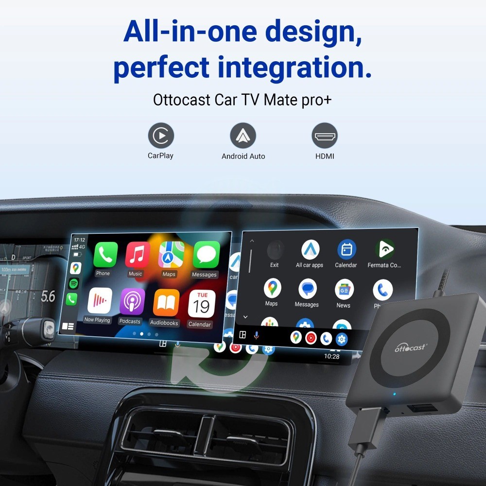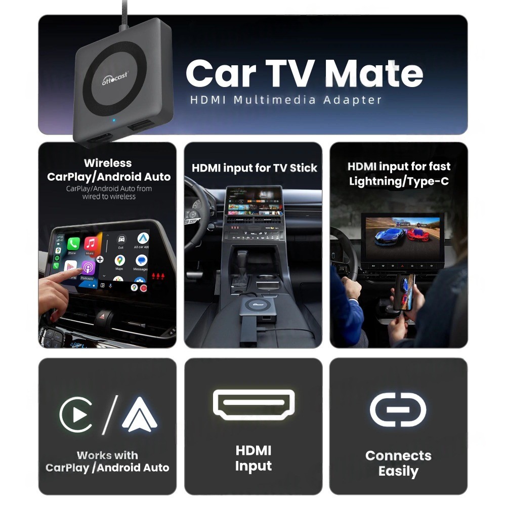 OTTOCAST รถ TV Mate Pro C4 ไร้สาย CarPlay Android อะแดปเตอร์อัตโนมัติ HDMI Video Converter สําหรับ OEM แบบมีสาย CarPlay รถ