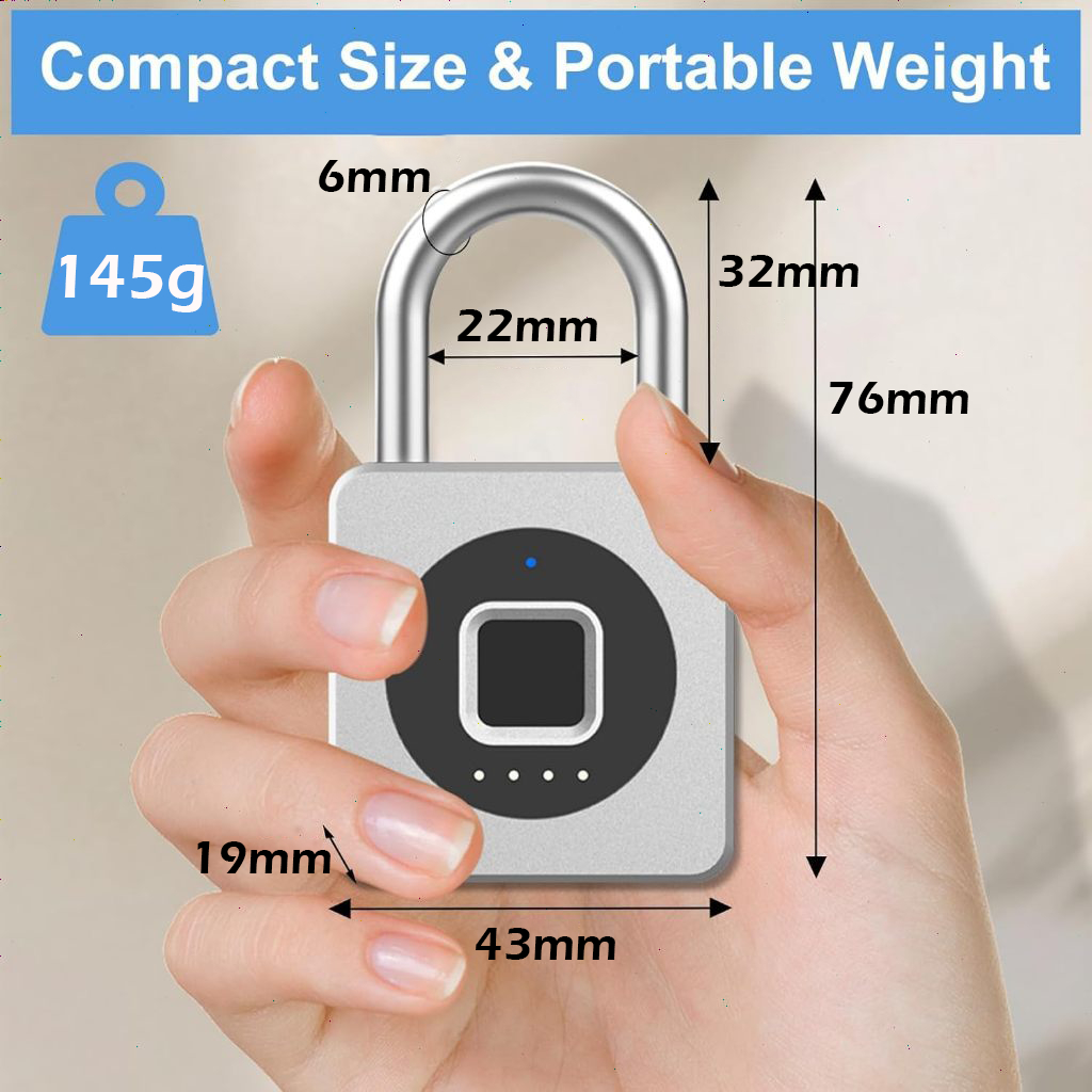 Fingerprint Padlock กุญแจล็อคอัจฉริยะ กันน้ำ เหมาะสำหรับยิม ล็อคเกอร์ ประตู รั้ว และที่เก็บของกุญแจล็อคบ้าน การชาร์จ USB