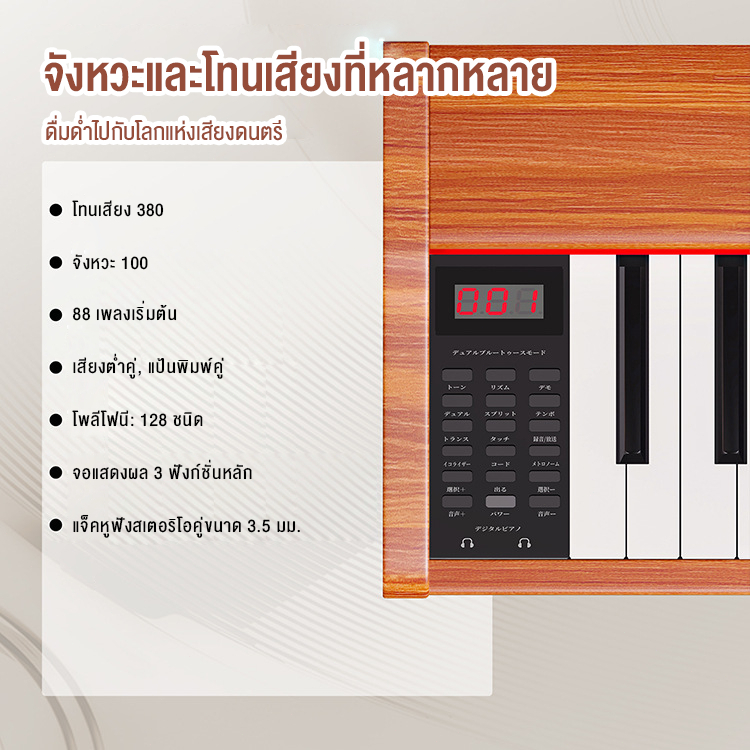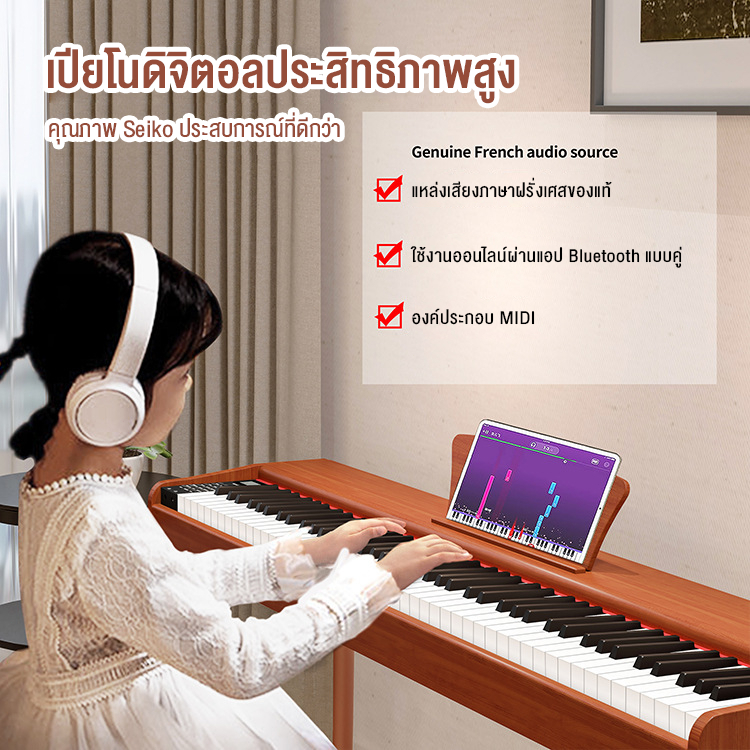 Benston Dynamic Piano เปียโนไฟฟ้า 88 คีย์ ไม้ สำหรับผู้เริ่มต้น มืออาชีพ สำหรับการสอบ พร้อมม้านั่งเปียโน รองรับ MIDI