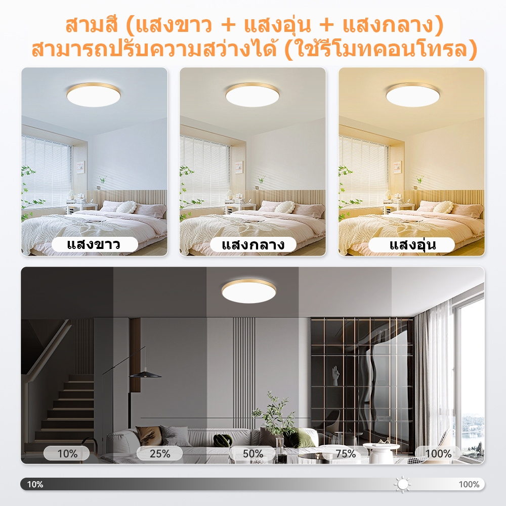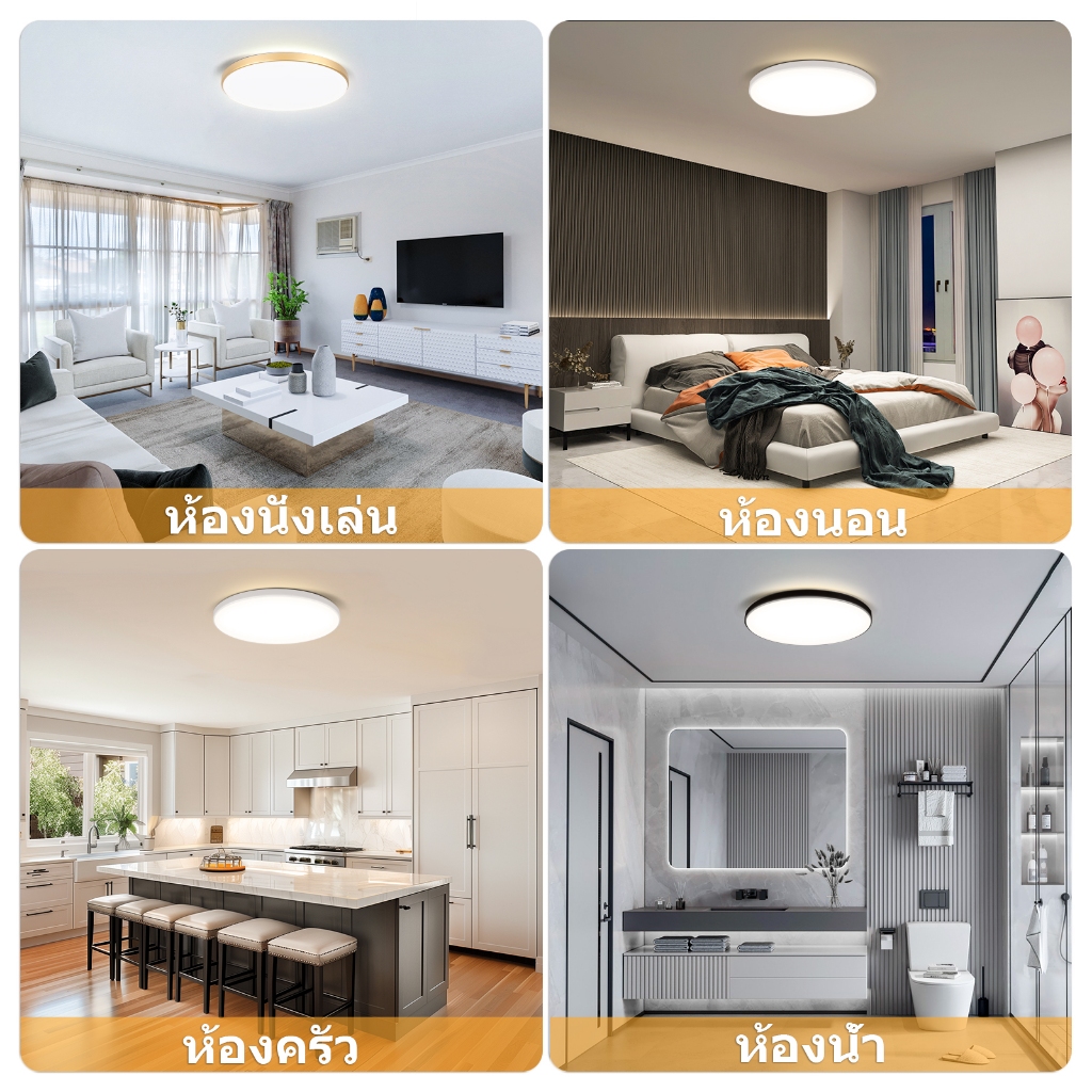 CANMEIJIA โคมไฟเพดาน 3 สี ไฟเพดานห้องนอน ห้องนั่งเล่น รอบ / สแควร์ ดำ ขาว ทอง โคมไฟห้องน้ำ โคมไฟครัว