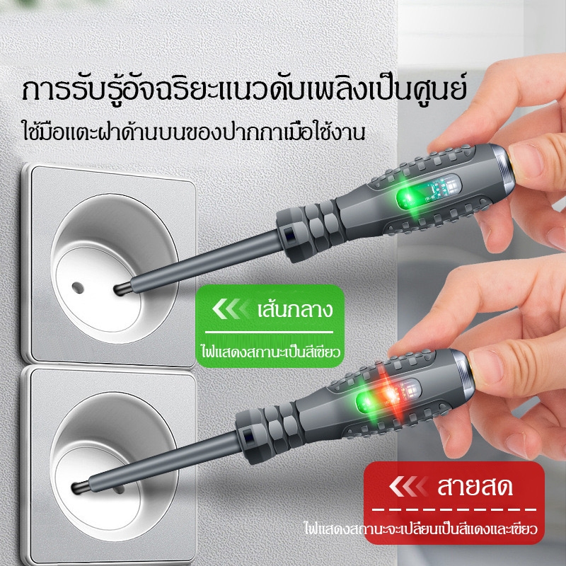 ปากกาทดสอบแรงดันไฟฟ้า ไขควังวัดไฟ แบบไม่สัมผัส มีไฟ สองสี ไขควงเช็คไฟ ปากกาไฟฟ้า LED tester pen
