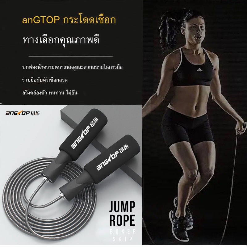 เชือกกระโดด ที่กระโดดเชือก ANGTOP jump rope workout boxer skip สามารถปรับสาย ด้ามจับนุ่ม ด้ามจับบุนุ่มกระชับมือ