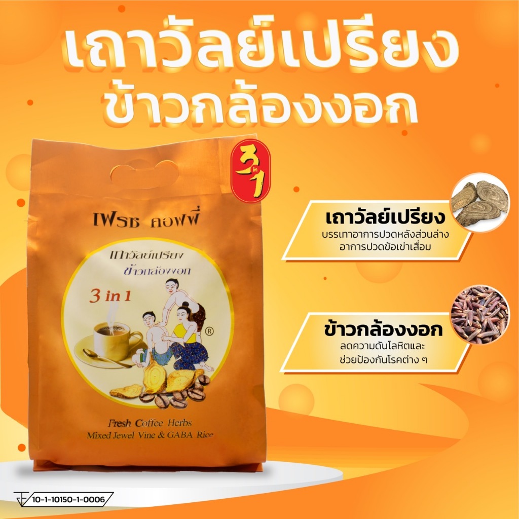กาแฟเถาวัลย์เปรียงข้าวกล้องงอก กาแฟคอลลาเจน กาแฟโสมกระชายดำ (22g.) ก้าวต่อก้าว เฟรชคอฟฟี่ Herbal Coffee