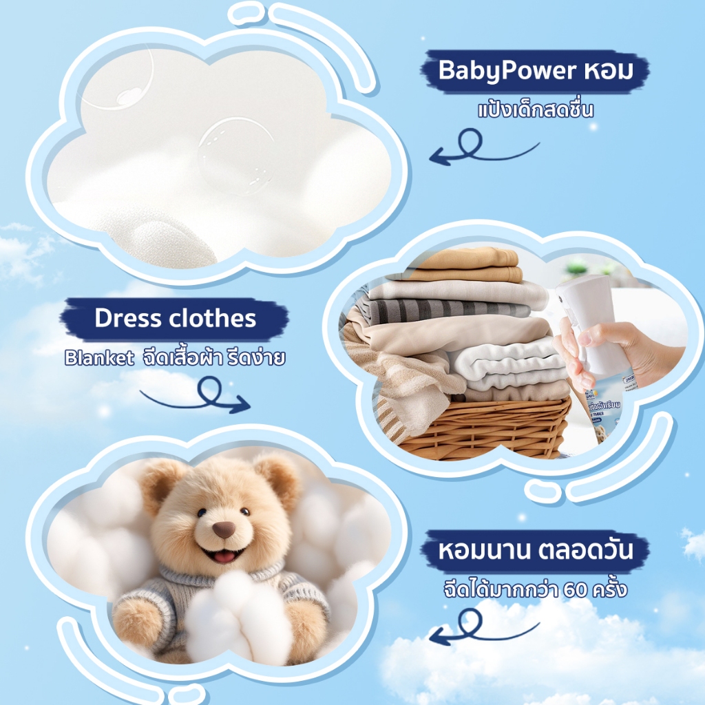 𝓫𝓪𝓫𝓲𝓮𝓶𝓲𝓵𝓭𝔂🐻 สเปรย์ฉีดผ้าหอม 200ml 2in1 น้ำยารีดผ้าเรียบ+ฉีดผ้าหอม กลิ่นหอมนาน ดับกลิ่นผ้าอับ 🐻